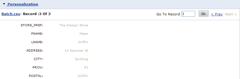 2. Use Go to Record or Prev/Next to see the personalized data for different records (based on what you provided in the data source).