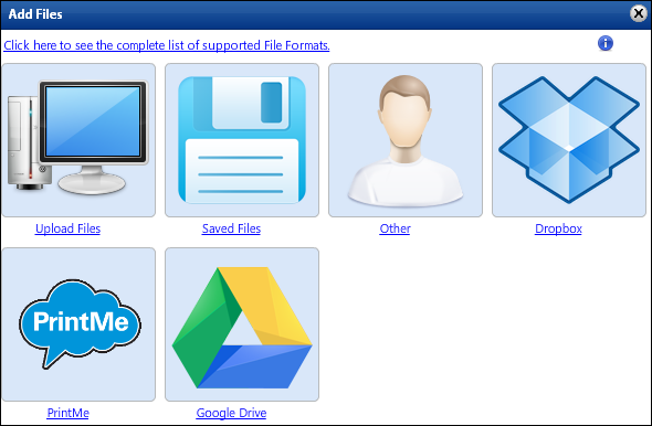 If a service that you use for cloud storage is listed in the Add Files window, you can download content files from the cloud when ordering a product that requires you to supply content.